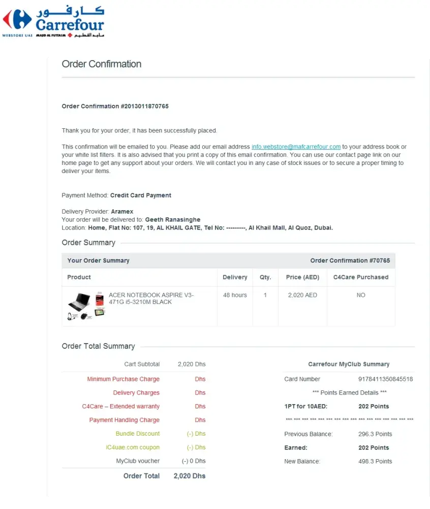 I decided to buy Acer laptop from "www.ic4uae.com/" (carrefour webstore) because they were giving good offer too (Touchmate Tab 7"). but after receiving I came to know that the Tab was junk and not charging at all. I went to exchange it and the reply was no warranty for offers and treated bad way. actually I was not asking for warranty but a serviceable Tab, I bought the lap bcz they were advertising that offer. This is shame to carrefour UAE.