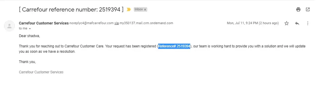 I have been regularly ordering through carrefour before with good service, but this time it was a bad experience this time. Now I regret that I shouldn't have ordered through carrefour. there are more reliable online sites available with good customer service,