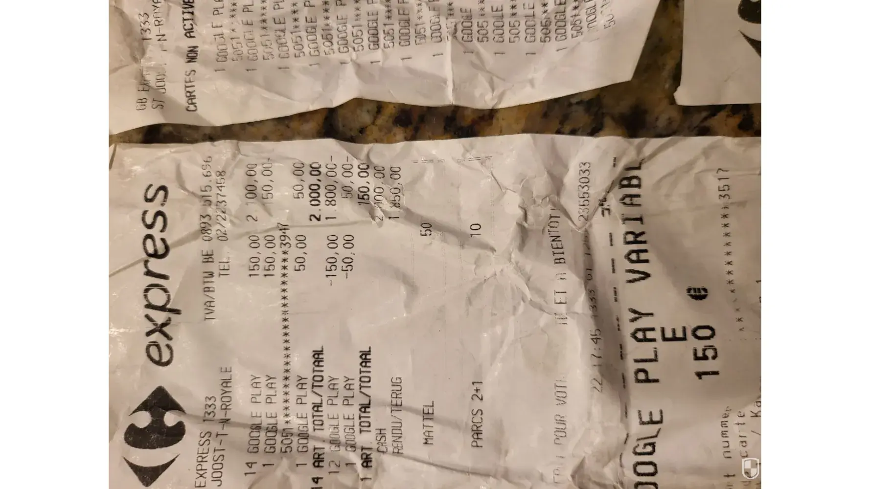 I'm from Honolulu, Hawaii. I recently went on a trip to Europe and while I was in belgium I went to a carrefour express on Rue Royale [protected] where I purchased $2000 euro worth of Google play cards. Later when I went home to activate them they all didn't work.