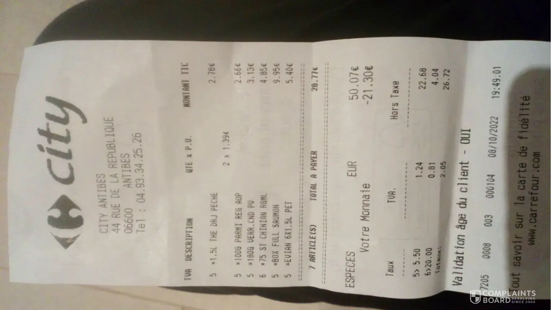 I bought a box full salmon sushi set at Carrefour City Antibes on Saturday 08.10.2022 19:49 for my mother.