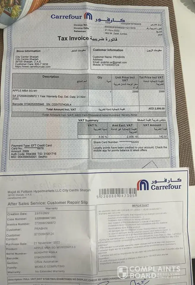 I have a faulty fridge freezer bought from mall of emirates dubai. It is under 1yr warranty. I have rang carrefour dubai on 25/10/22 to request technician support as per their rules and I have not had any correspondence since despite ringing on multiple times and speaking to various managers they all just pass the buck to somebody else.