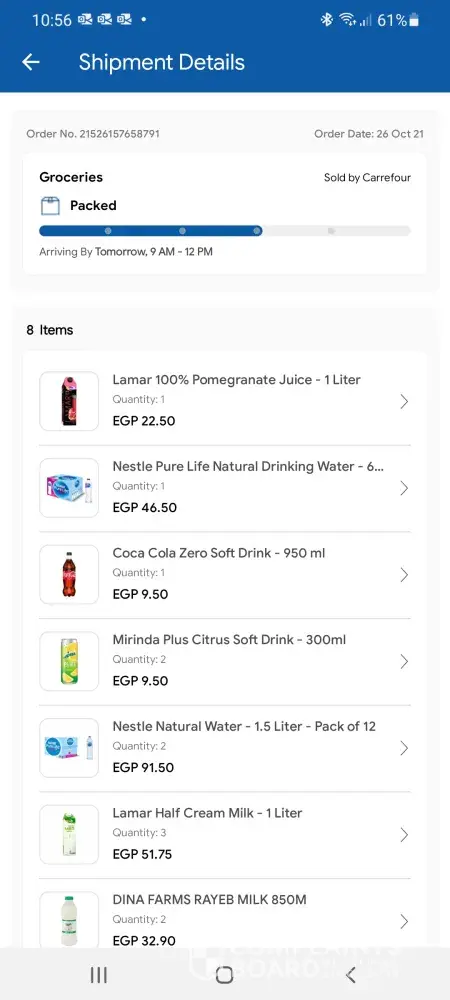 I ordered order in Wednesday then carrefour take the money from my visa in Saturday I received the order today with missing items about 310 pounds while the whole order is 514 I called customer service he only write a complain ?! Where is my order ? Why no body call me and tell me ?! Why I'm waiting for 3 hours without knowing anything ?!😡