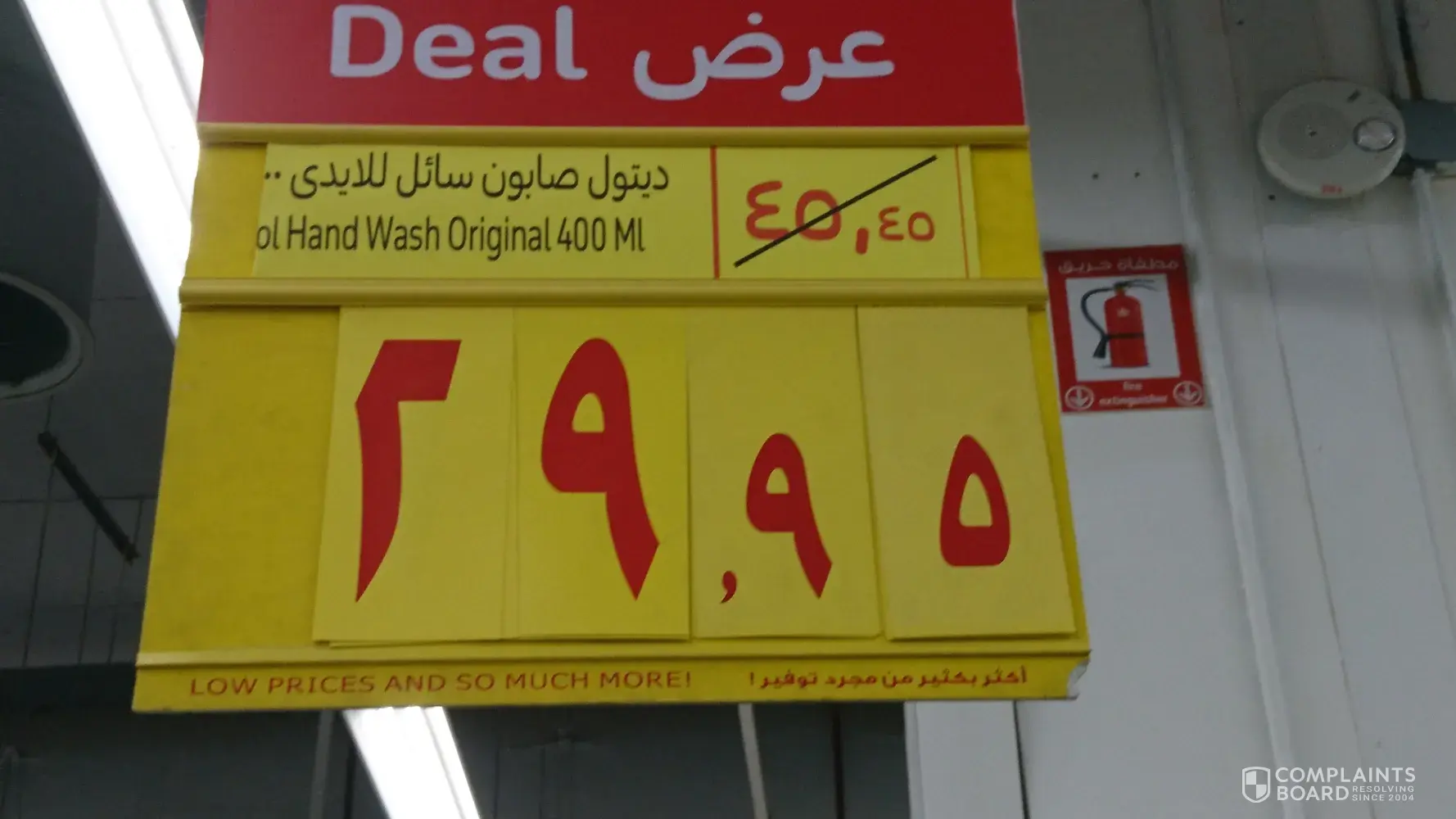 I have an issue that have been repeated several times which is the wrong labeling on Products as attached 2 photos the product is the original Dettole 400 it is written on the promotion label 29.95 and when i got to the cashier i found it with 55.95 which has been repeated several times before this time i insisted to complain as it such a huge embarrassing situation i was in while paying for my products on a side note i have been a loyal customer to your respectful Brand but with this issue i am considering to shift to another hyper market i am waiting for your kind reply and feedback