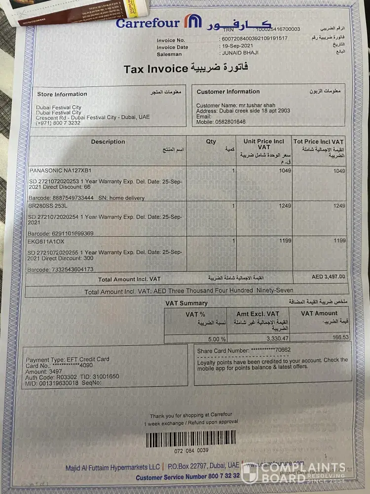 The LPO issued by Carrefour to Al Gandhi was cancelled by supplier citing no delivery possible for Abu Dhabi (Supplier has no jurisdiction in Abu DHabi). This info I came to know from AL Gandhi, Carrefour never told me. the app shows items delivered and my refund never came neither the machines. I ended up paying credit card company huge amounts as statement was over due. Carrefour to date has not refunded nor updated cancelled status in the app. Would someone care to resolve this ? Lesson learnt, no more purchases from Carrefour.
