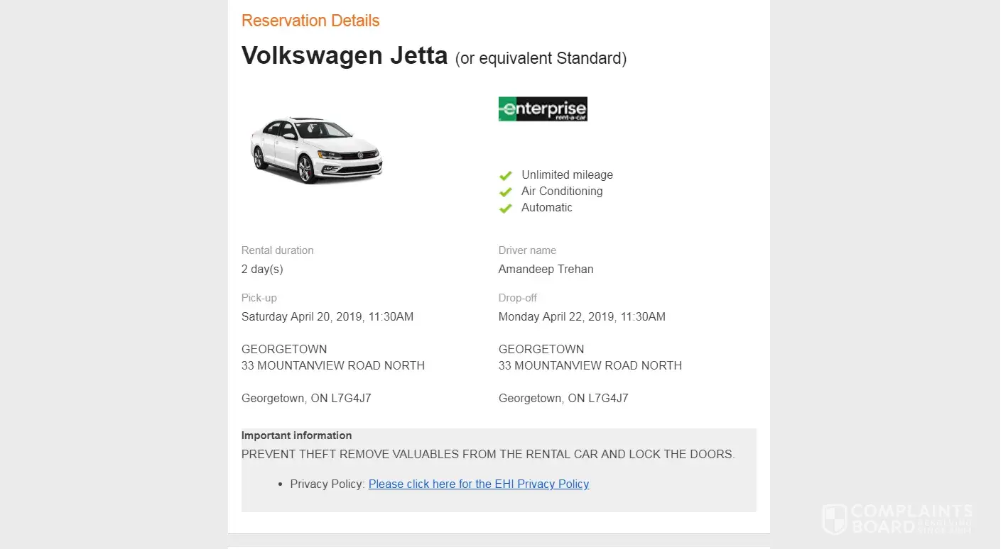 Read full complaintCar rental