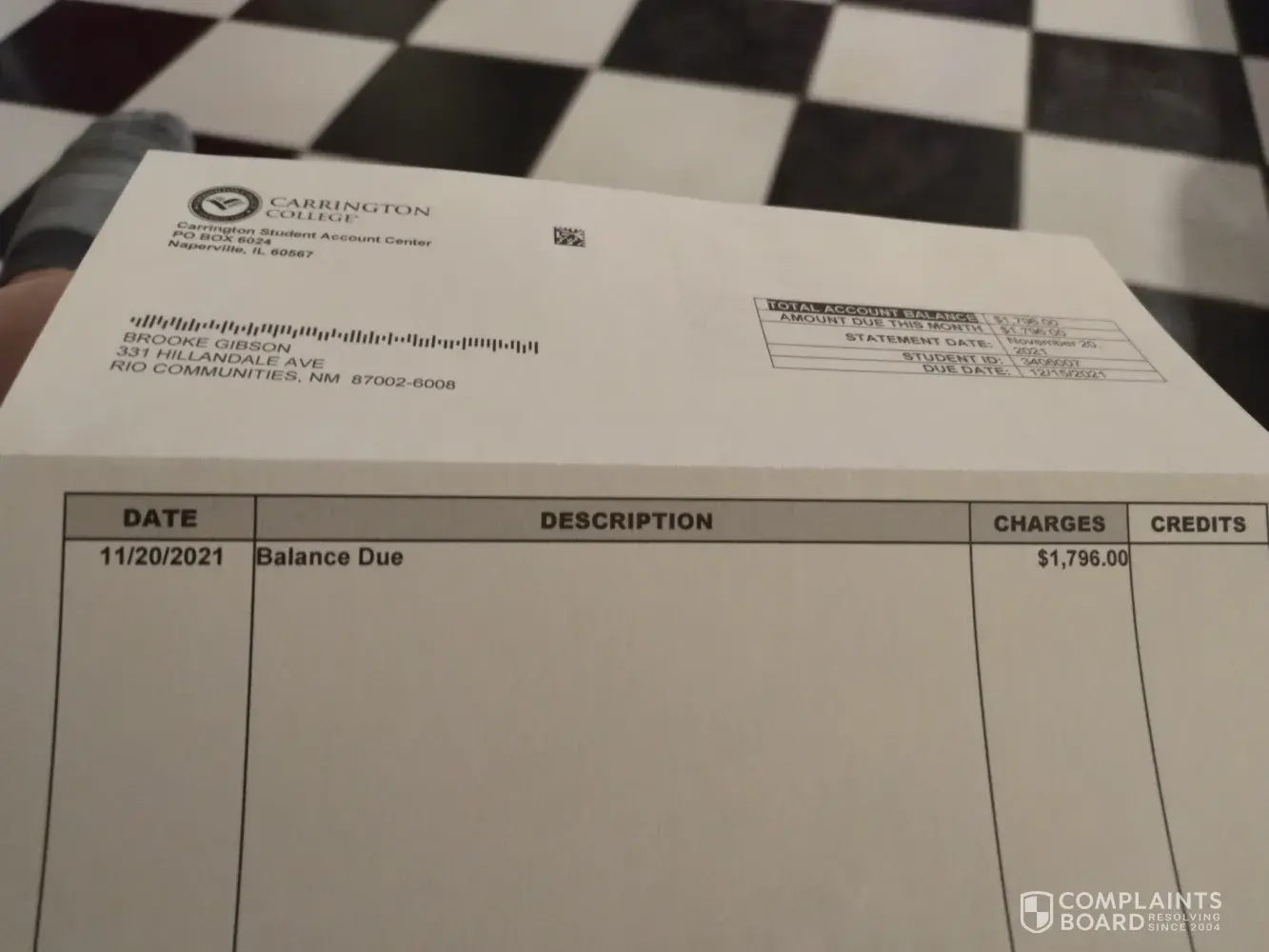 Yes I havent been in Carrington since October 4 do to I had covid and wasnt better until November 2nd and was dropped out of the school and didnt start this school until September 13 or 14 th so I know my bill should not be 1796.00 when I only went for a month and a half. They need to fixed this to the right amount and I still have the books I asked if I can return them no answer. I also had government grants and loans not through the school. But im ok paying the right amount for the month and half of school. Not for three months.