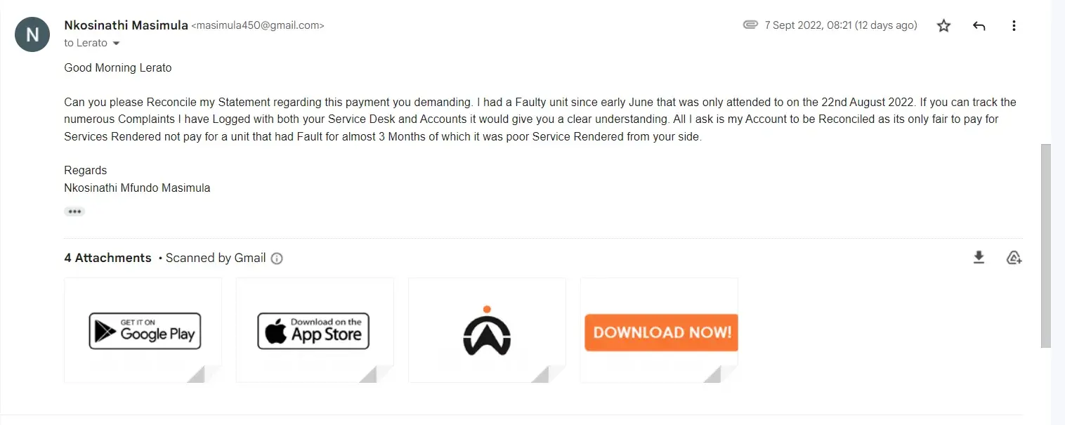 Desired outcome: 3 Months Statement to be Reconciled as its not fair that I'm being charged for Services that were not Rendered