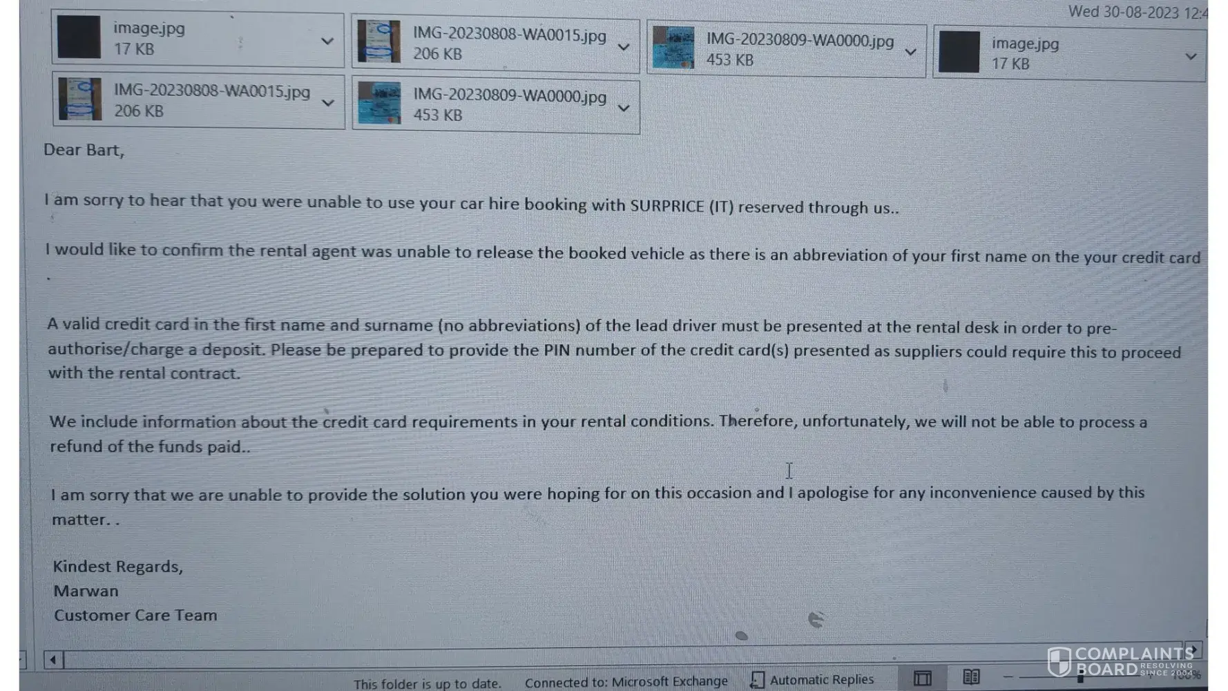 We firmly believe that, as customers, we have the right to a refund or the vehicle we reserved, despite the delay in collection.