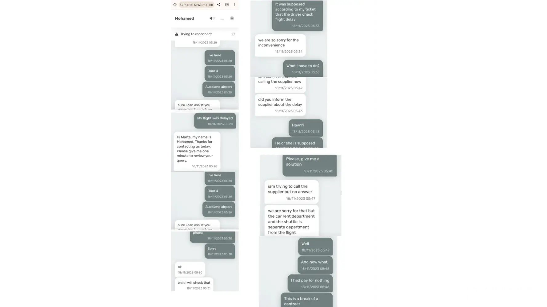 Airport transfer failed to show.