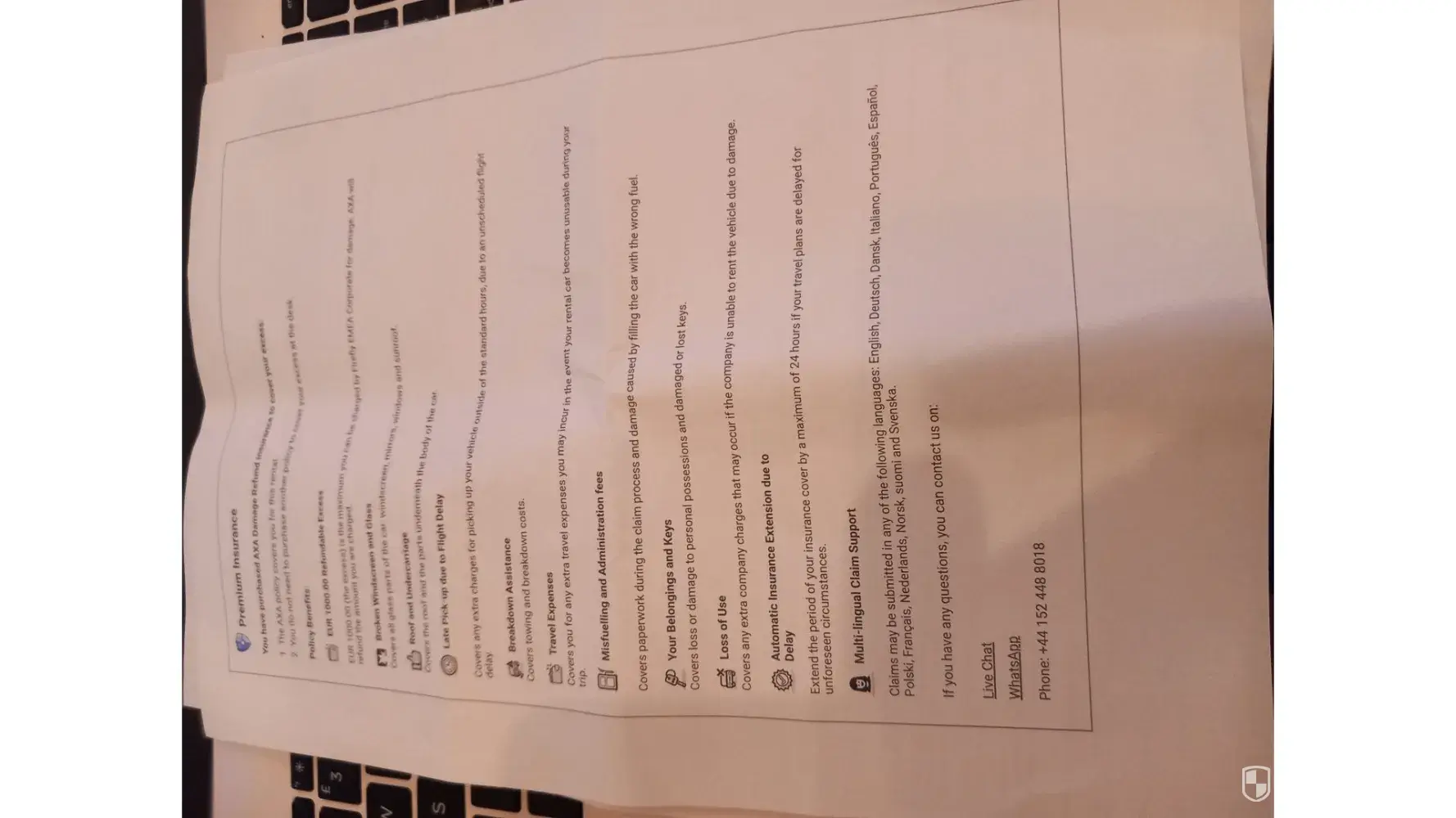 I booked a car to which I paid a premium insurance, only to find out that the rental company will still secure a $2,250 deposit on my credit card and they will use the ENTIRE amount if the car gets any scratches or dents. When I asked them to cancel the useless policy they said it needed to be cancelled more than 24 hours prior to the rental period, ignoring that I booked the rental only 2 h in advance. I wasn't informed of none of the important facts - that they need 2,250$ security deposit and that I can't cancel the policy if I don't needed it.