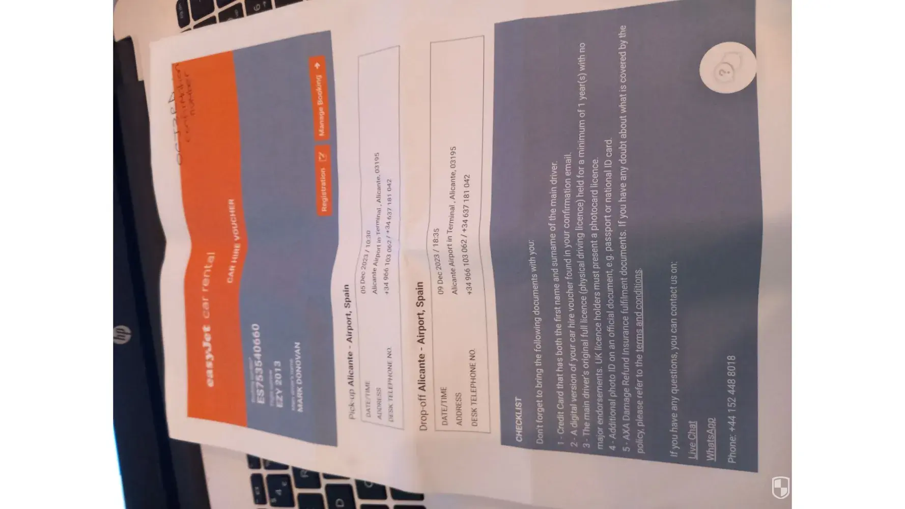 My reservation number for car PL779414860
