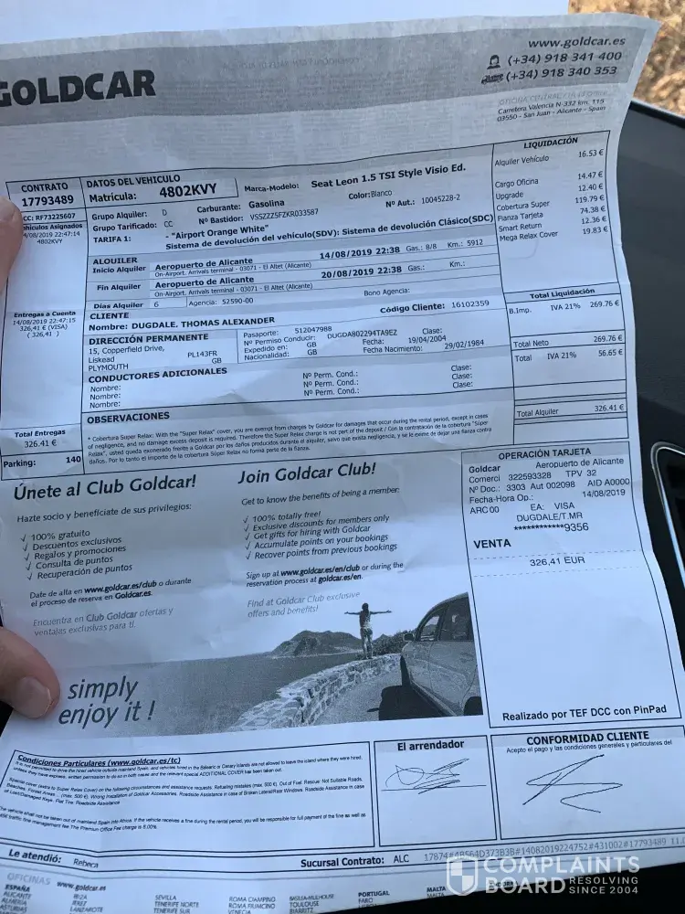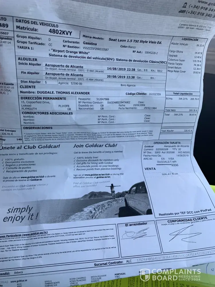 As a family we wanted to escape for a few days following a stressful time prior to attending a funeral. Yet this has caused stress and upset and meant we have very little money to do anything whilst here in Spain. I have attached proof of my spending on the new car