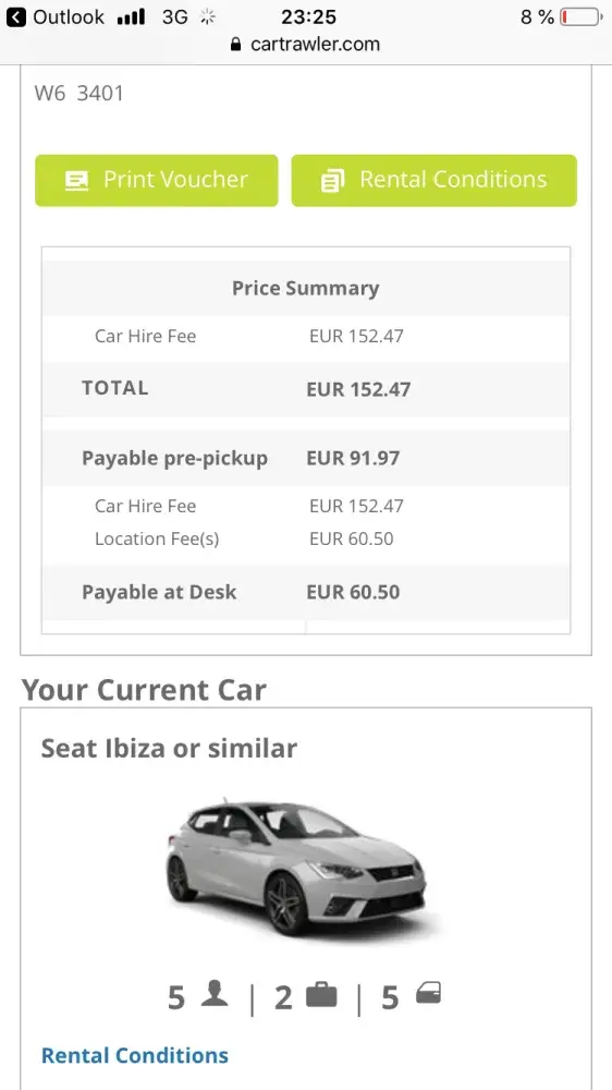 I was then told that even if I had been on time I still wouldn't have been given the car because I needed a work contract, and various other copies of documents which I wasn't previously made aware of. The booking confirmation email stated documents like passport, driving license, booking confirmation and a credit card, which I brought with me.