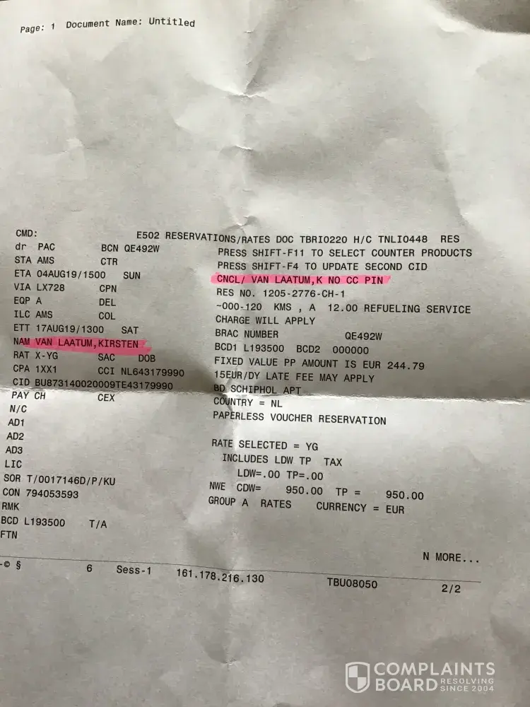 Am 4.8 .2019 kam ich an in Amsterdam und wollte mein gemietetes, bereits bezahltes Auto (244, 79€) abholen.