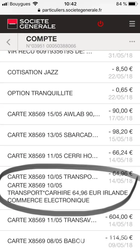 Only, after having been debited 64.96 by your services, I was then surprised to be debited 73.20 per Hertz.