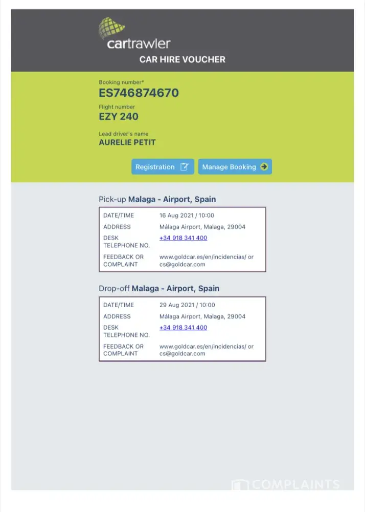 Cartrawler has done nothing to prevent this from happening and when I contacted them about it, their view was that it was a shame, but they can't help.