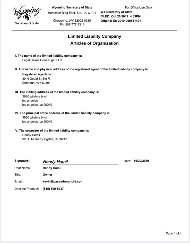 Cases done right and fraudulent name of Kevin Kaufman stole our money by fraudulently promising to deliver marketing efforts and never refunded money and never performed. The services were not rendered. Never made any efforts to refund our money and simply ignored our requests. Their company is a scam, there are more than 25 law firms that were scammed by far. They are changing names and trying to get away from this.