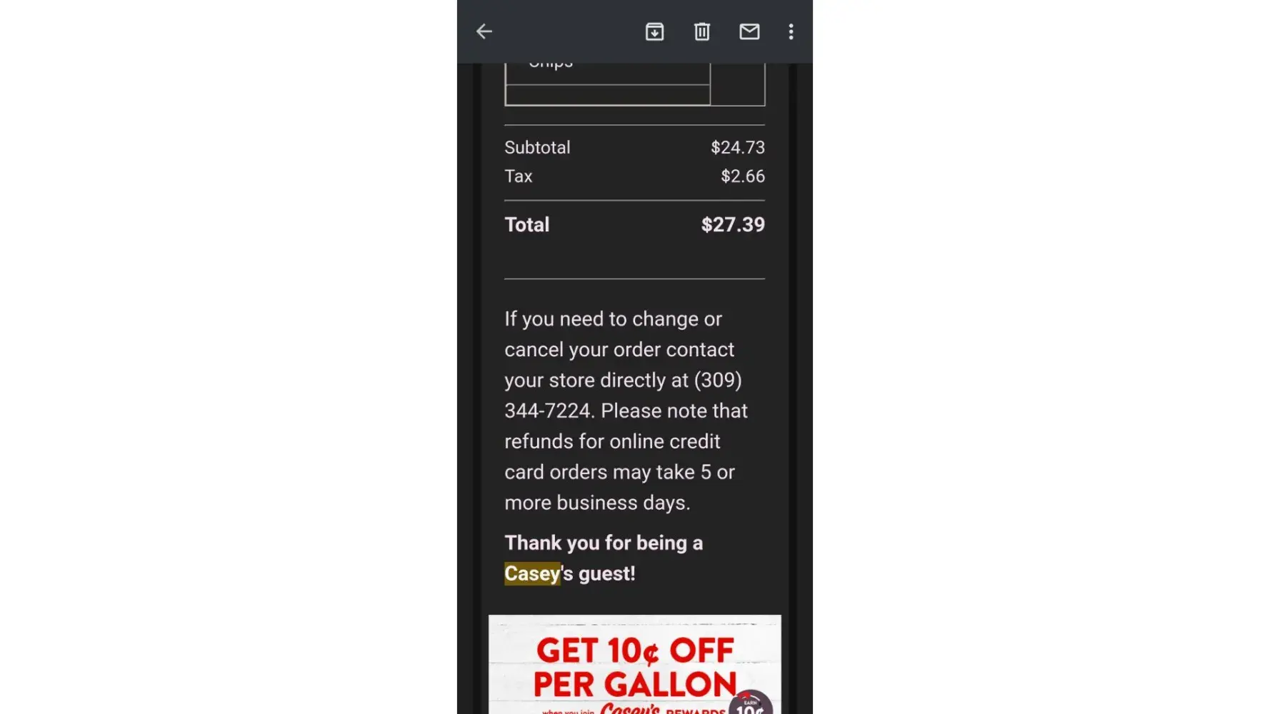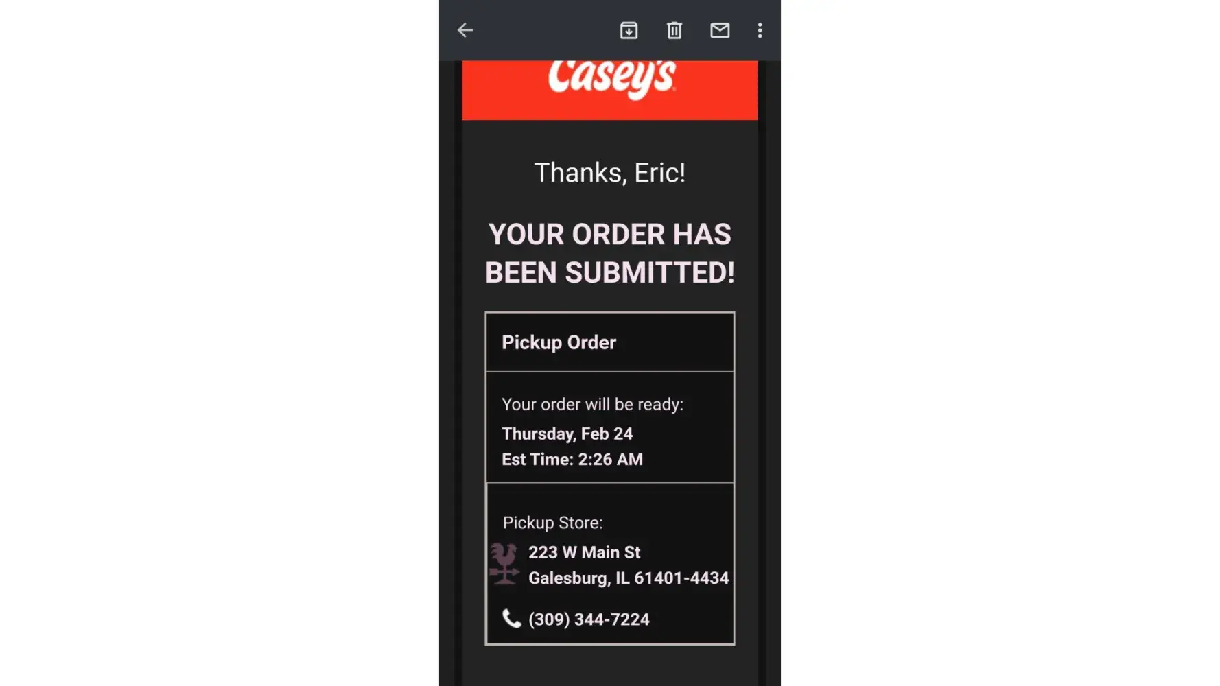 Casey's emailsprivacypolicy@caseys.com100%Confidence score: 100%Support