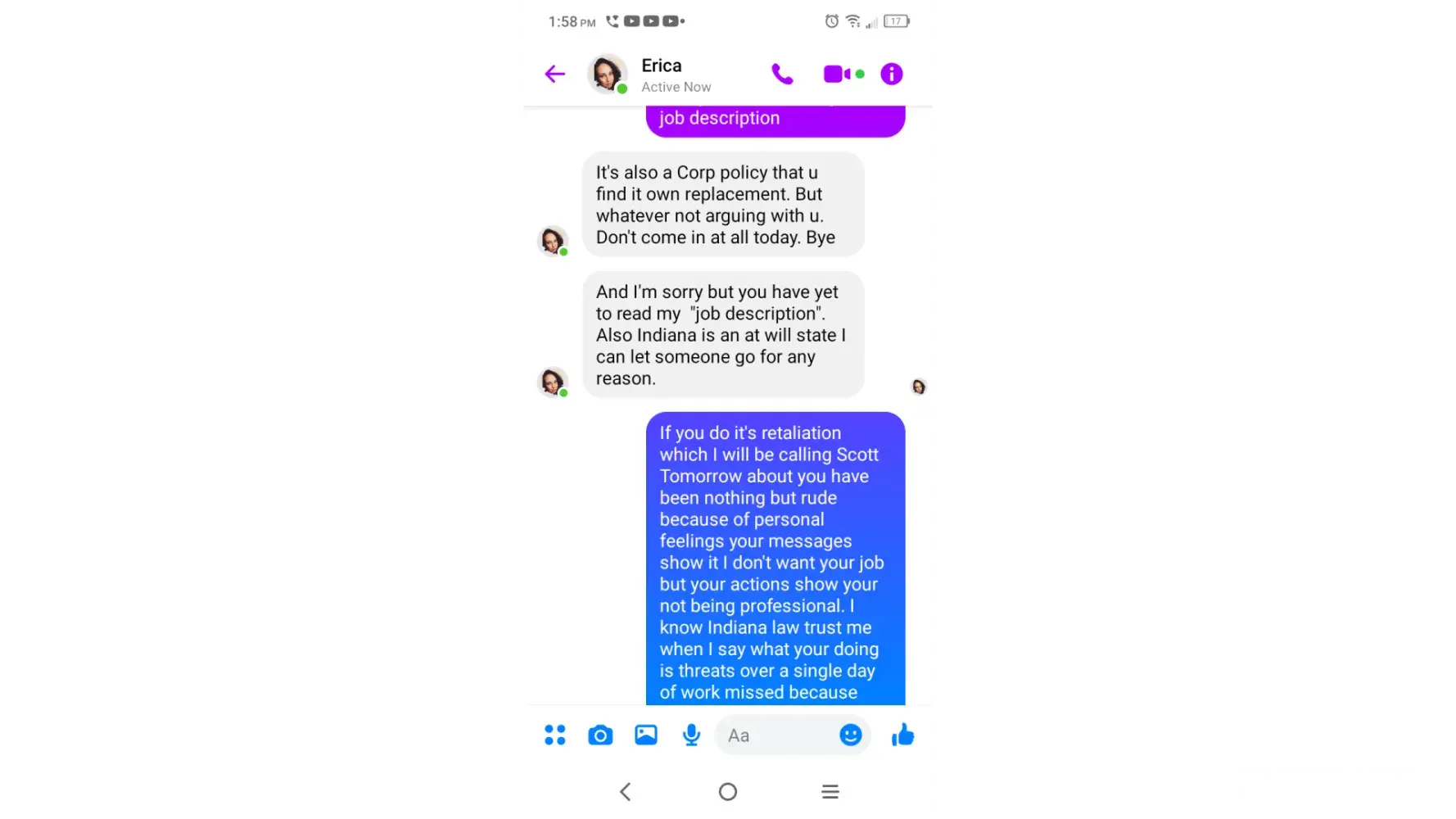I was threatened last night that I was to work this weekend, we work every other weekend and she had confirmed this that same day (yesterday) same morning, then I received a threat of a write up.