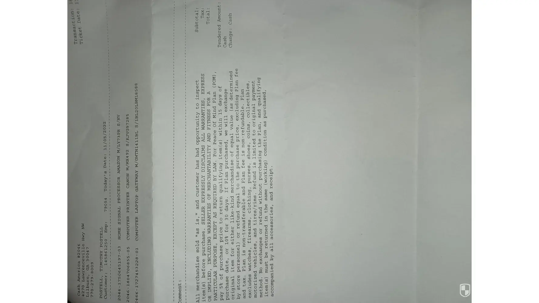 I purchased this item on Friday. November 05 2022. Transaction [protected]. From Cash America pawn, 4270 Lawrenceville why, Lilburn Ga.30047. Laptop wouldn't come on when I got it home. Nothing, Black screen. Brought it back today. They refused to exchange or refused. Because I didn't get a warranty. Quality product don't need a warranty.