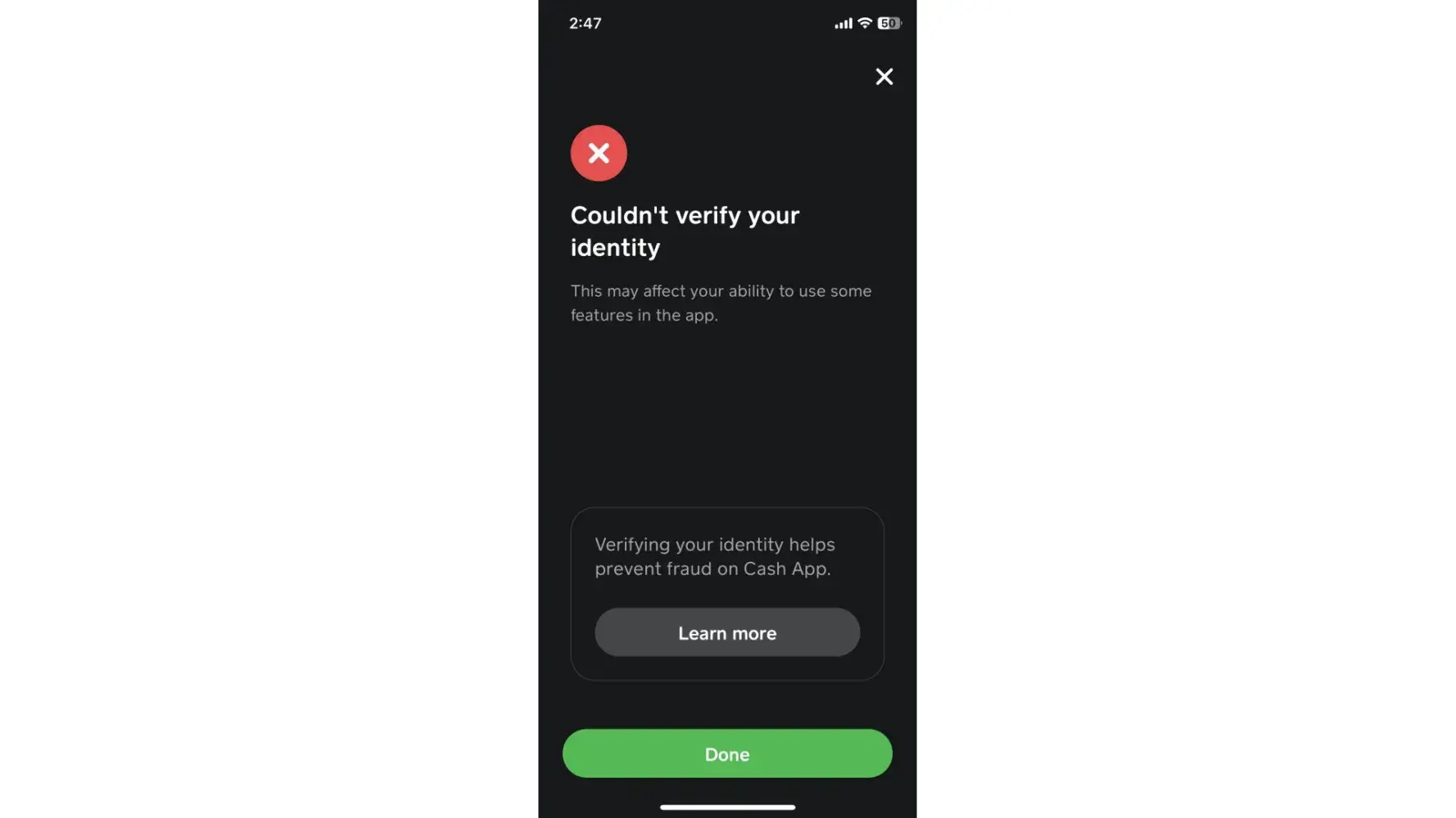 I can't verify my identity on my cash app account