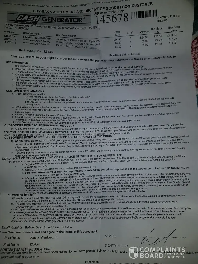 Hi christine. Did anything happen ? Im in a similar predicament but i rang them the day before 2nd lockdown started and no one answered. They shut early at times too and the phone mainly rings out and diesnt get answered after 5pm even though the shop is meant to be ooen until 5.30pm etc. They dont write down our contact detsils which is why they say we cant contact you as you we dont have your contact details! Even though each time ive given them my number in person and over the phone and ive even emailed head office!At the bottom of the agreement it says opted out of contact details which is blatently a lie. Lockdown has been terrible re cash generator and ive just been told my samsumg tablet gas been sold even tjough i wrote to them and trird ringing them to come in to pay for my item the day before lickdown but no one answered as usual! Ive lost ocer £100 on my item. They havent told me when they sold my tablet nor the amount and as for my memory card they have thrown it away! I fel for you and hope others can write and tell us their problems re cash generator and the lockdown problems aling with not answering phones amd closing their shop early!