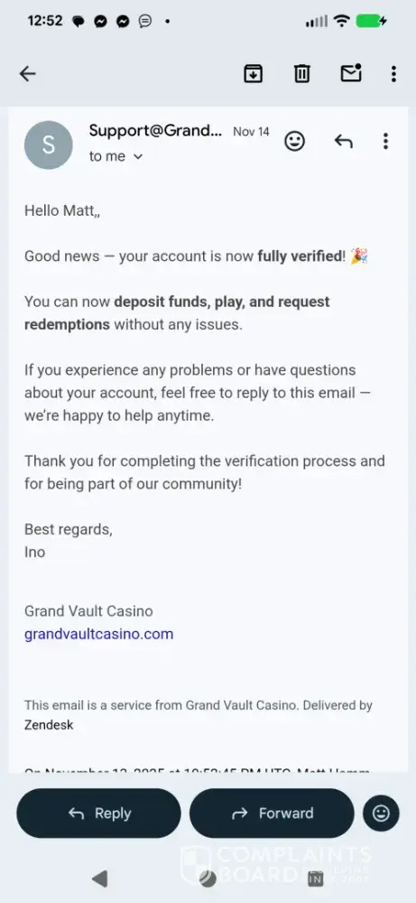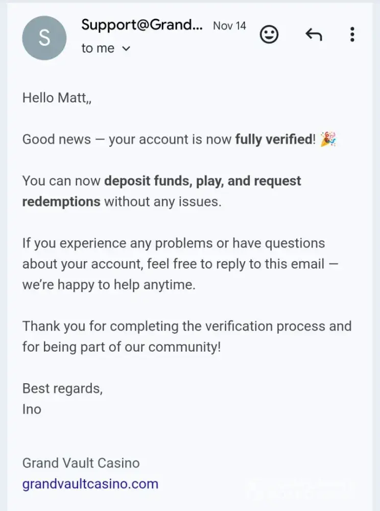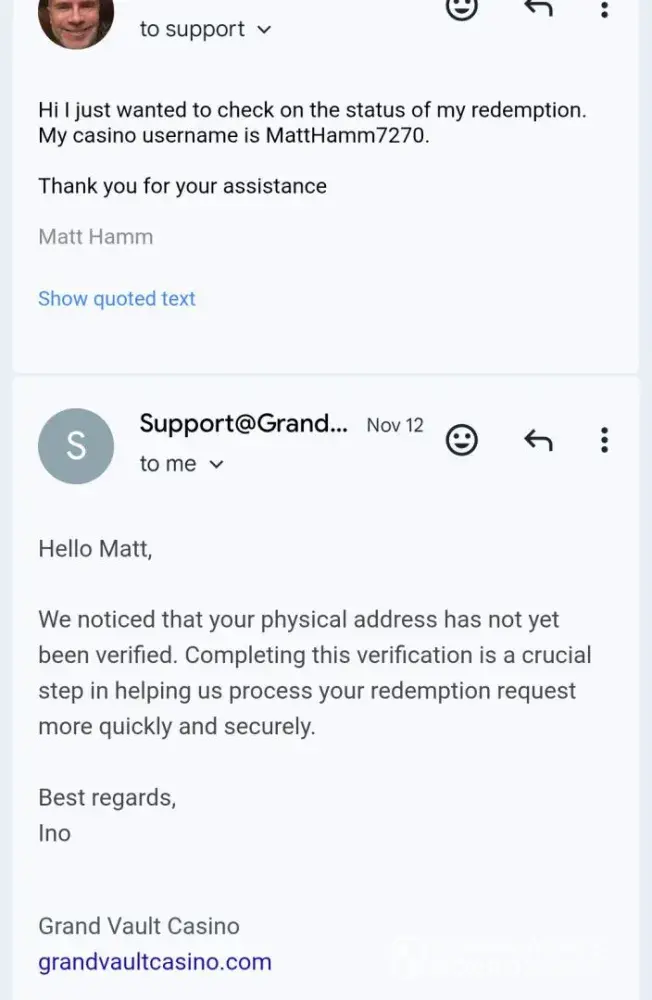 I became a registered user at the Grand Vault Casino on [protected], which operates as a sweeps casino. I purchased one of their Gold Coin Packages which provides the player with a large amount of gold coins, which can be used for recreational play only. The gold coins are basically worthless as they cannot be redeemed and have no monetary value, for someone...