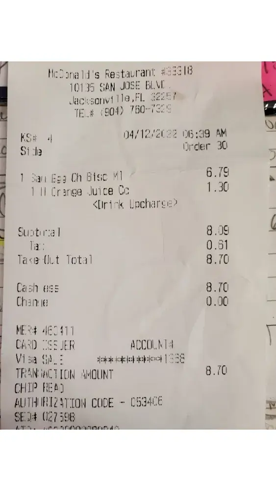 Ran through the drive-through for a Sausage Egg and cheese breakfast meal with a small drink. The price of the meal states $6.79, but when I get to the window I am charged $8.70. When I questioned why I was charged so much the young lady said "I don't know I just started" then walked away. The next lady came to the window with track marks on her arms and I...
