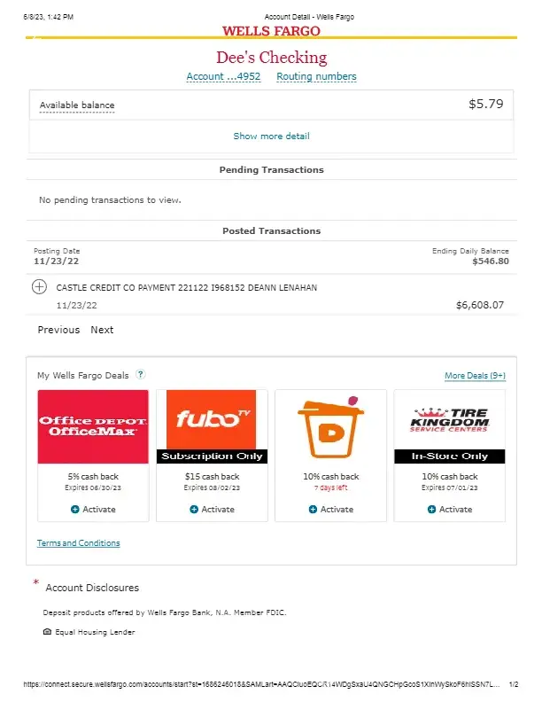 My husband and I had an account with Castle Credit and we got behind on the account due to my job loss