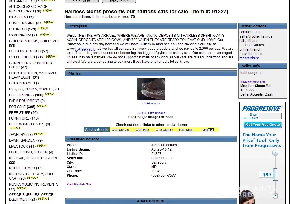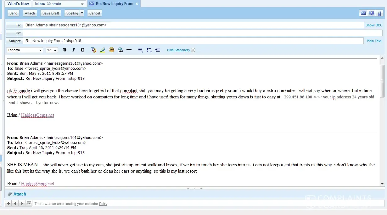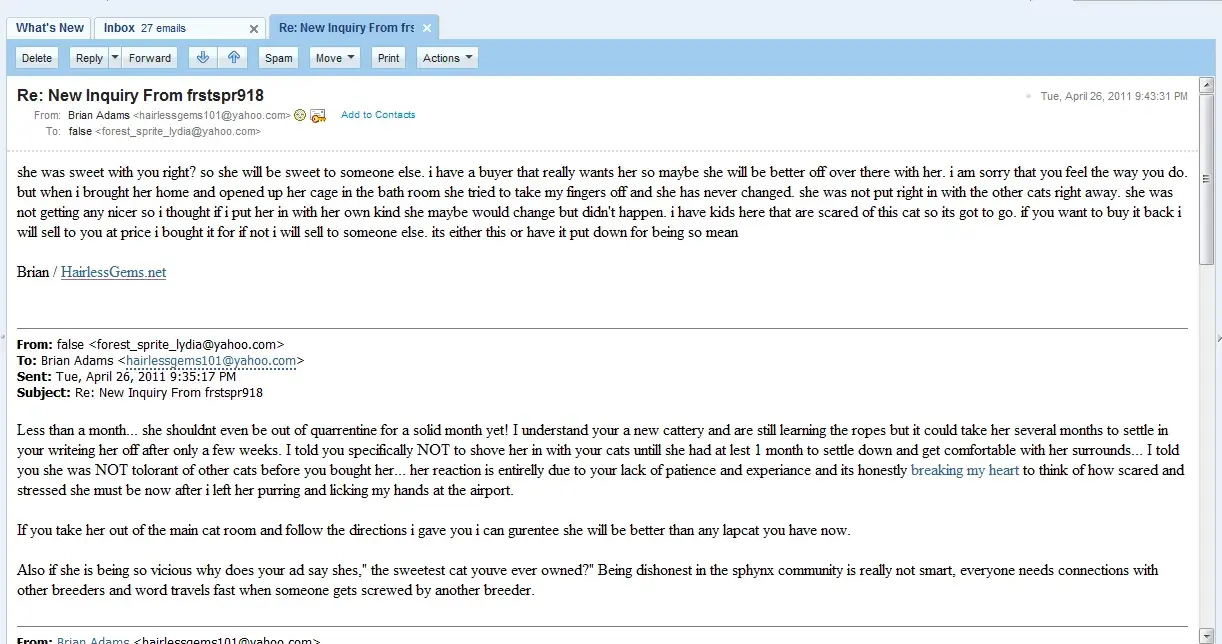 Read full complaintHairlessGems Cattery - Brian Adams