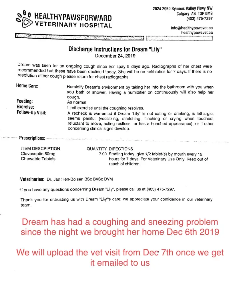 I am yet another victim of In #inthebuffsphynx #peacebulldogs(Michelle Francis Graham). THIS IS DREAM'S STORY I brought home Dream Dec 6th 2019 I paid $1800 for a healthy odd eyed white female pet what I got was a sick blue eyed white cat who needed immediate vet intervention. Dec 5th 2019 - Dream was apparently taken to Michelle's vet in Sexsmith for a...