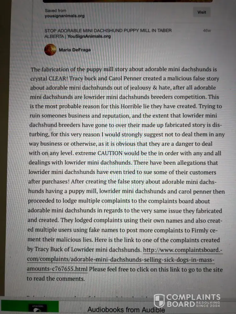 Read full complaintBareNakedBabiesSphynx Cattery RE: Toni Dually - slander, fraud
