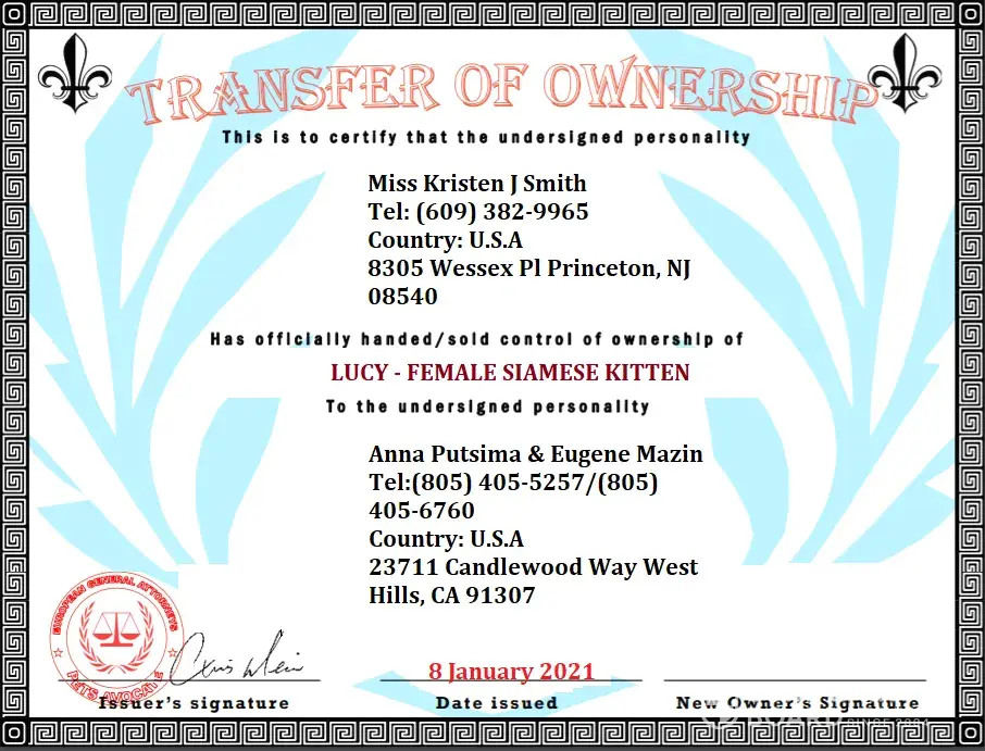 Went online looking for a siamese kitten, they were located in Princeton NJI had inquired about several of the kittens and opted for one called LUCY.. She was gorgeous and i was in love instantly The owner (Scammer) was in touch with me relatively quickly, we settled the payment of $500.00 (thank god it wasn't more ) Once the money was received by AE she...