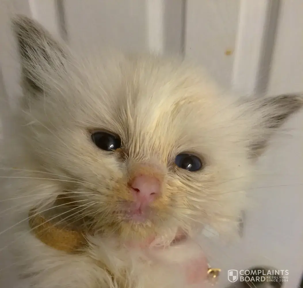 Read full complaint and 10 commentsBaby Blue Eyes Ragdoll Cattery - sick kittens