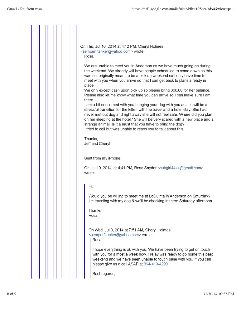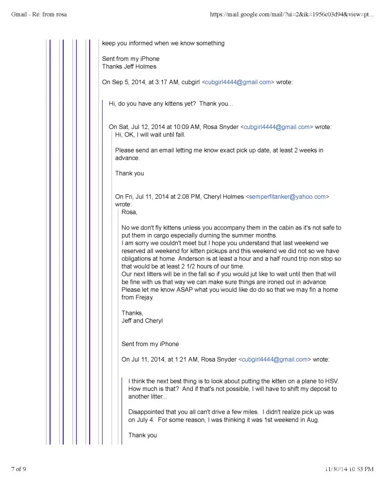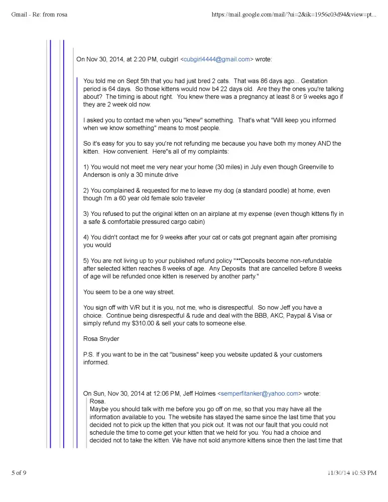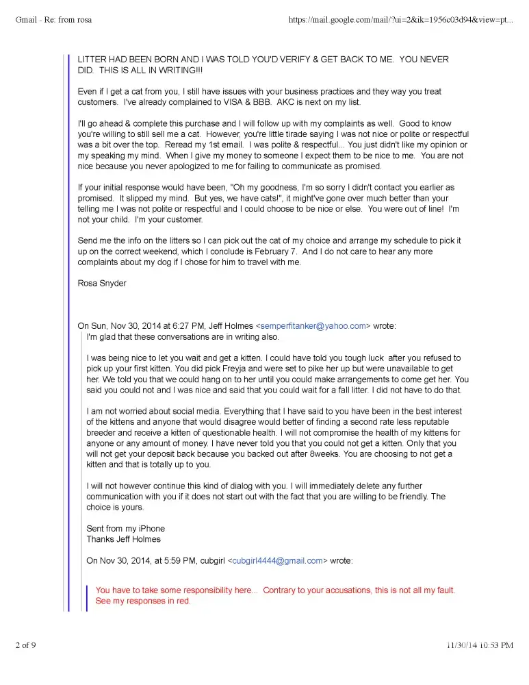 Read full complaint and 1 commentTheresa Porter - Bad cat breeder
