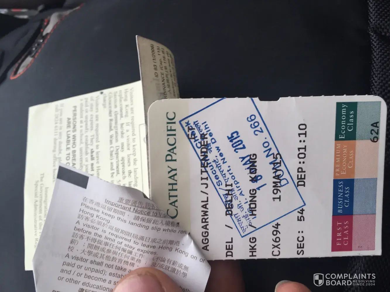 My flight date is 19/5/2015 Cathay Pacific airline flight no cx 694