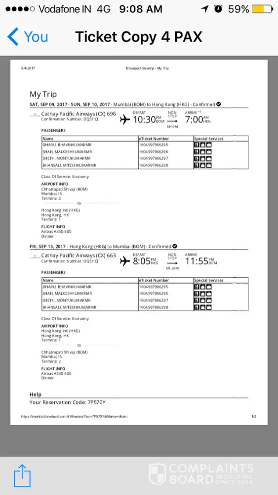 This is Disgraceful the way I have been treated and I am horrorfied at the deliberate Indifference of all concerned at Cathay pacific concerning this Mess.