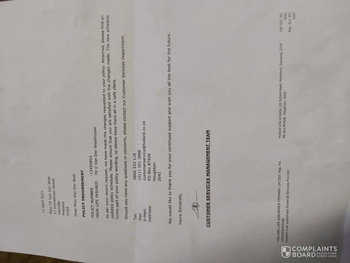 If I don't get the sorted I will file a complaint with the POPIA..