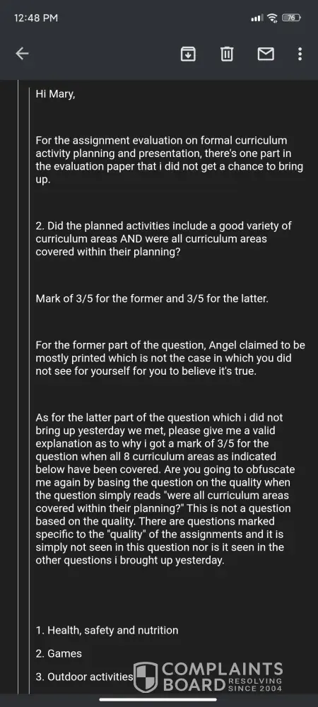 Enrolled in the ece program, did everything according to the practicum outline. In one of the practicum practises was bullied by a support teacher at the daycare facility. At the end of the practicum she gave me a report that is highly negative that would fail me. I tried to consult with my instructor Angel Yang and my ece coordinator Mary Pierce that the mark given were biased and unfair, I felt that I was being bullied but I was ignored because they did not listen to my complain. Moving forward I contacted campus director Dennis Liu to see what can be done and he asked me to redo some assignments which turned out to be of no help and totally misleading as in the end was not accepted by Mary the ece coordinator. I felt I was being tossed back and forth that no one wanted to help me and often times the instructor/coordiantor/director have different say. In several person-person meeting I was not taken seriously. Specifically Mary Pierce was quite intimidating and did not give space for me to speak, all I was told was mark given was final.