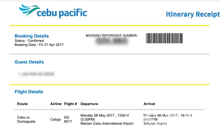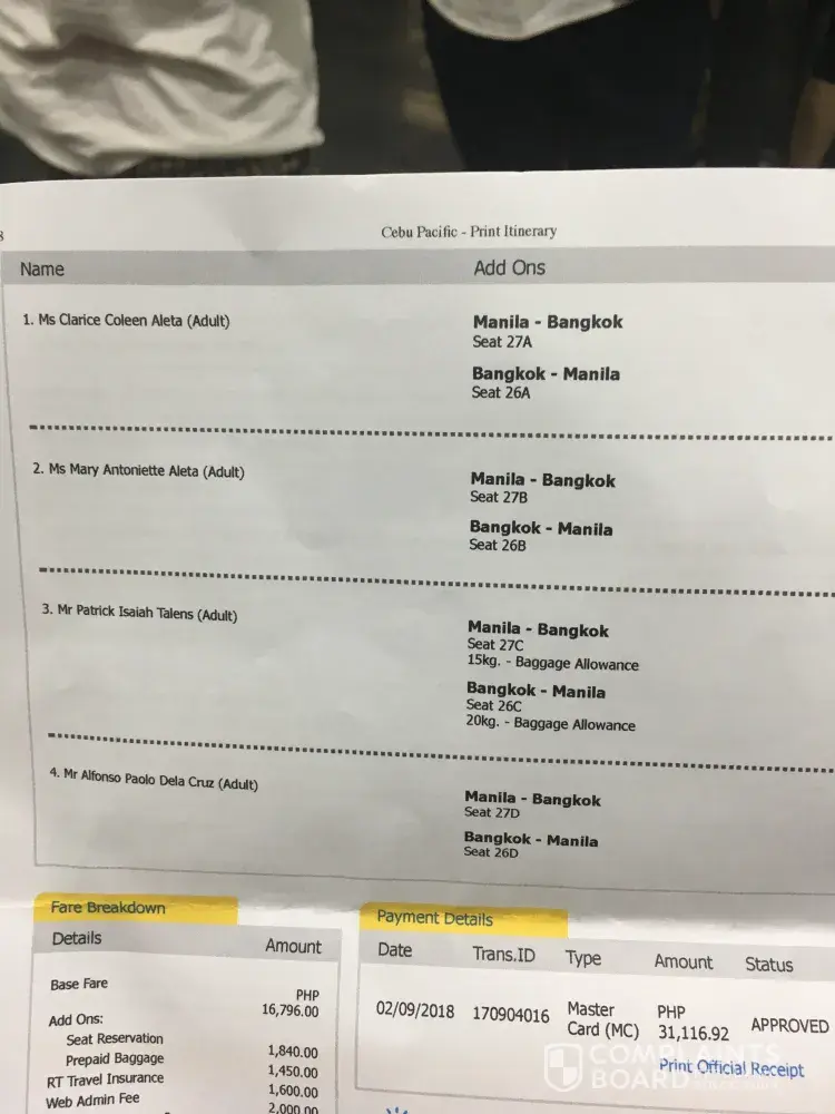 Photos below will show cebupac receipt for one passenger.