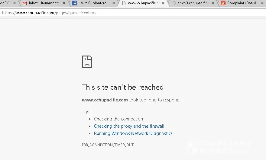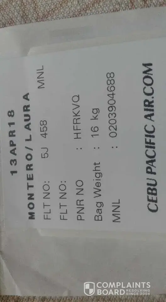 I want to complain for the damaged of my luggage last April 13, 2018. Flight number 5J 458 Depart from IloIlo City (1140) arrive in Manila (1300) I went to customer service and they gave me the site when I can complain but that's not working as I uploaded in the Photo box below.