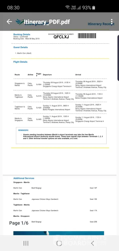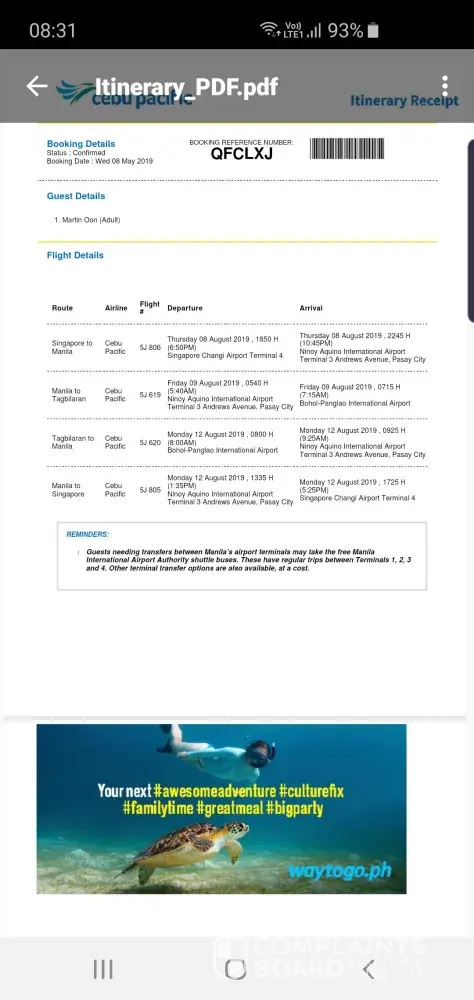 Also hand luggage weights 7kg you can only carry and no other personal bag, another hell, I've been travelling all my life and this is the first time I've encountered. For this I will never fly at Cebu Pacific anymore. Very bad service and I hope there's no delay will happen this evening. Hoping the service will get better in future to make passenger travel comfortably cos no one wants a stress.