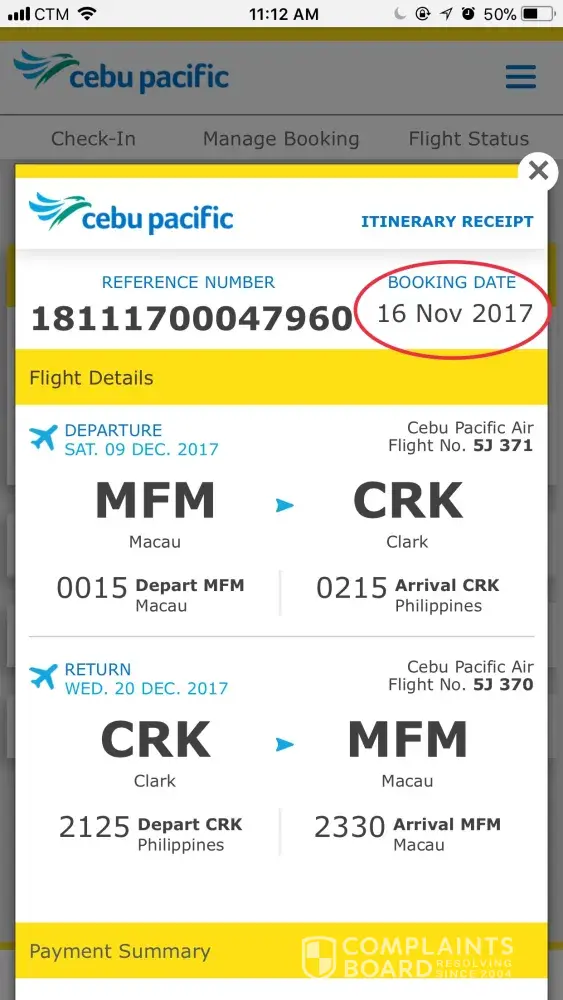 It was my second time to book a flight in cebu pacific website but i always get the incorrect booking date and invalid reference number everytime i go to bank to pay. At first I booked a flight last 17-nov and the booking date in the itinerary receipt is 16-nov. i tried to pay the bank within the day of booking date but the bank said the reference number was invalid. I booked again today 19-nov but i got the same problem, the itinerary receipt booking date is 18-nov instead of 19-nov which makes the reference number invalid due to payment must me done until 23:00 of the booking date. I think cebu pacific website have problem. Please fix this as my preferred flight schedule is coming and until now i dont have ticket yet!