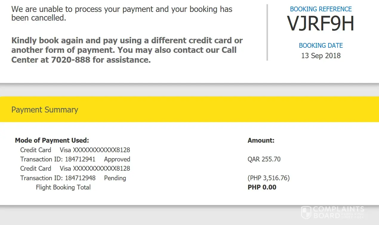 I would like to clarify this booking reference number# ie7zhd if this is really close or okay because when i book this morning the payment is approved but suddenly messages shows that your booking is closed we are unable to process your payment and your booking is cancelled. I am wondering why because in the payment summary its shows that transaction id: [protected] is approved with the amount of php 2, 825.20 please clarify this booking if this is really cancelled what happen to my payment