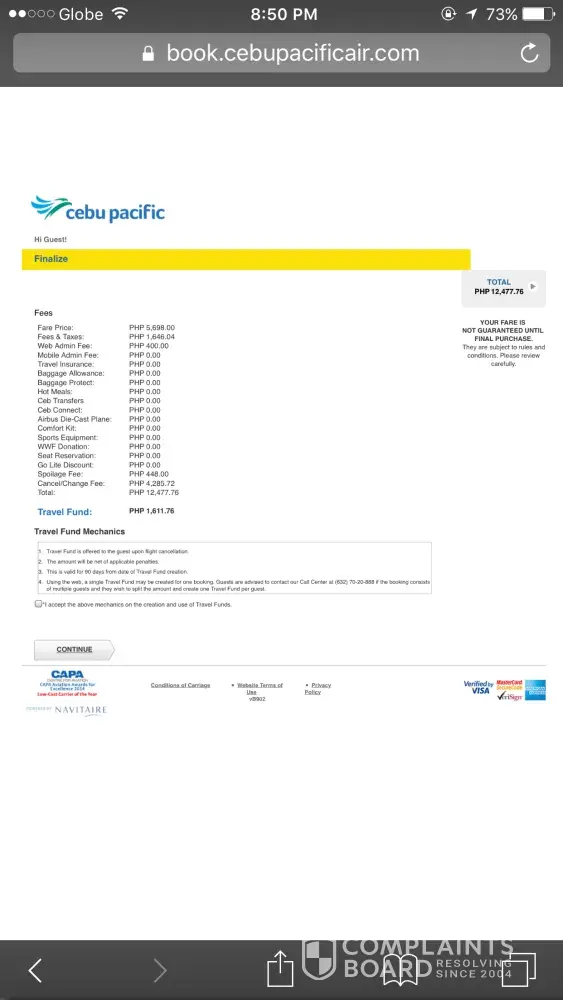 We purchased promo ticket for MNL-PPS-MNL from cebu pacific online booking with flight scheduled April 26-April 30 yet my husband would like to extend the return flight and chose May 3 but upon checking the fare was too high but still i decided to reserve it worried that when my husband decided to agree with the schedule fare will be higher if i didn't reserve it but then i didn't able to pay the ticket thinking that the reservation will be cancelled automatically sabagay we have the confirmed tickets naman already but when we came to the airport today they are insisting us to pay the rebooking charge of more than 5k since we rebook online. We argued for a moment kaya lang kase we will be late for our flight kaya napilitan kaming bayaran ang rebooking charge. Bakit ganun hindi naman dapat pinabayaran sa amin yung rebooking charge kase may return flight naman kami at syempre macoconfirm lang yun kung pumayag kami bayaran sa online diba? pang pocket money sana namin mag asawa yun kaya lang napunta lang sa inyo. Gawan nyo naman ng paraan yung marefund yung binayad namin kase hindi na kami makakapagargue dahil wala ng time. Hoping na magawan nyo ng paraan ito. salamat