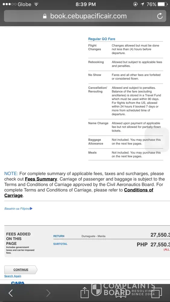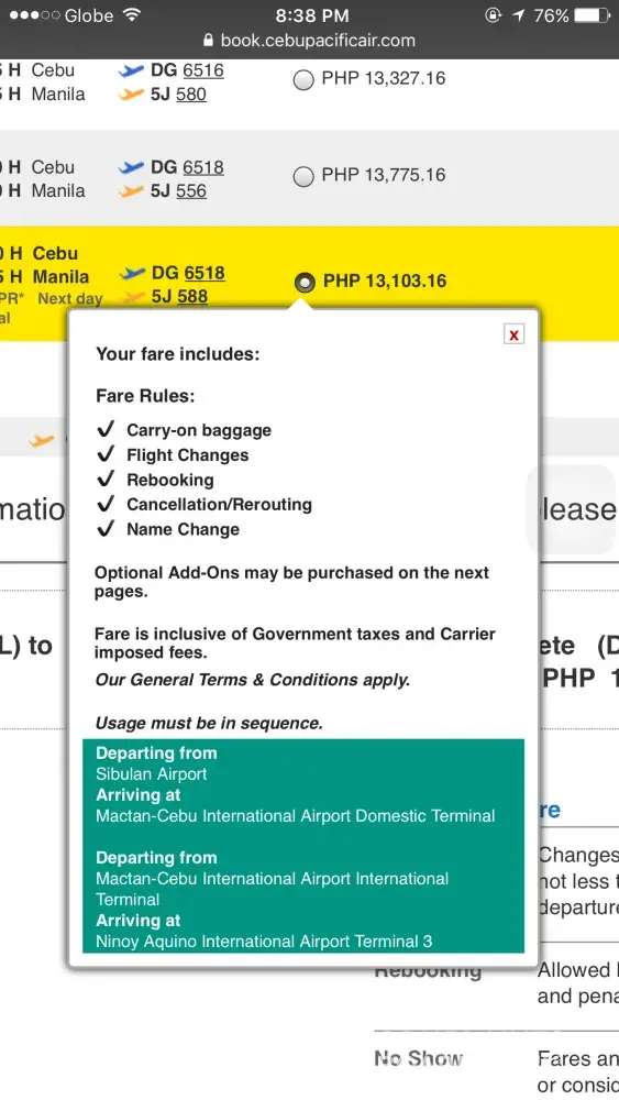 I made the booking process from Cebu Pacific Web site last April 13, 2017.