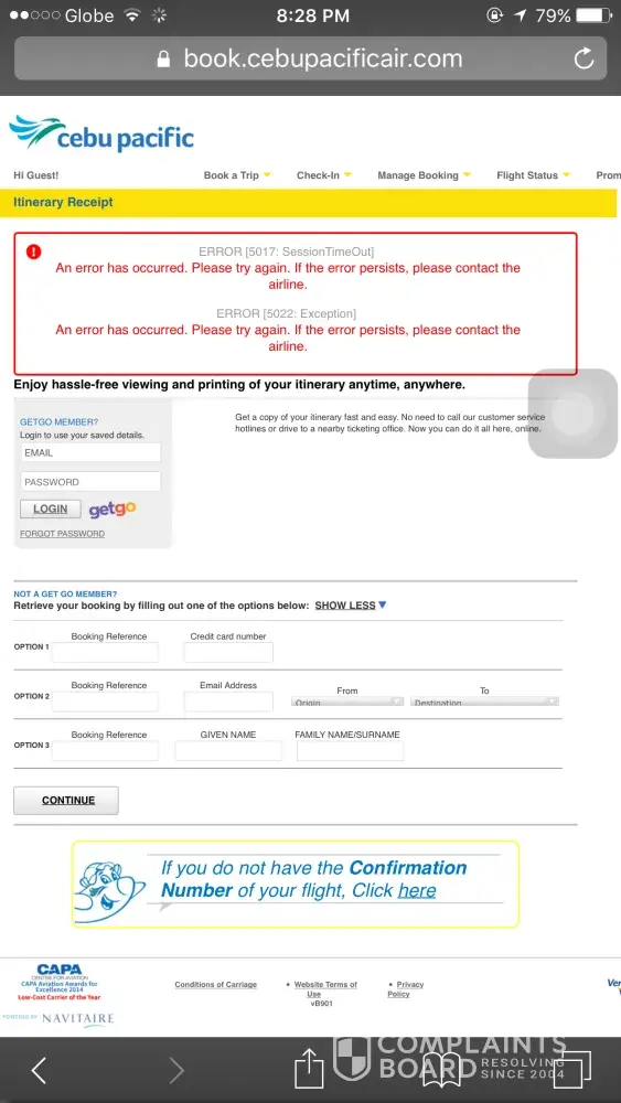 On the day after, my boyfriend got an e-mail from Cebu Pacifics reminding that the booking had not been confirmed and redirecting us to the confirmation page. Although, the link to confirm the booking led us to a regular booking page, showing the timetable of all the flights and their respective prices.