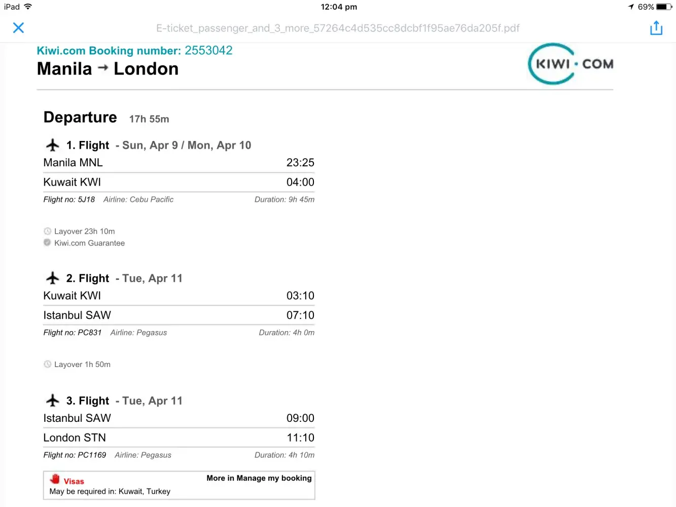 The following are chronology of events/communications with cebu pacific.