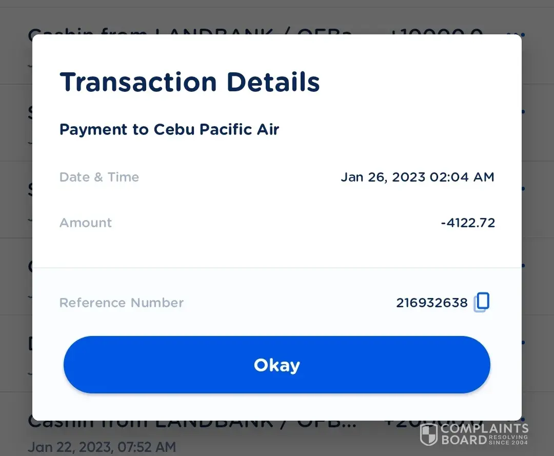 Jan 22: Successfully paid the transaction, but again not reflecting on Cebupac's end. Bank confirmed that it was approved, but Cebupac sent notification once again that payment was unsuccessful.