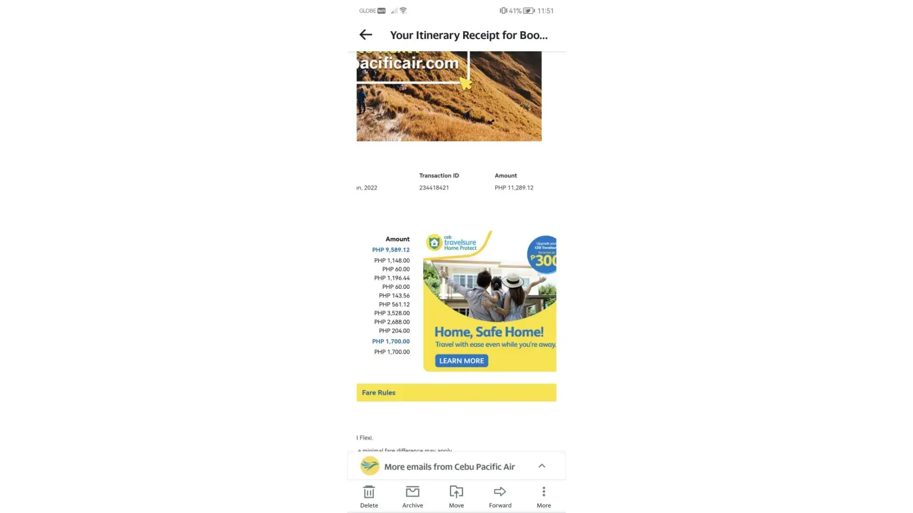 I’m initially only asking that you refund my airfare of 20,119PHP. On the condition that I’m not forced into legal action and that you agree to resolve this problem as soon as possible please.
